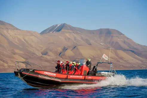 Tag med på en mindeværdig sejltur på Isfjorden i en åben og stabil Polarcirkelbåd. På denne 3-timers tur får du både storslåede naturoplevelser og spændende historier fra Svalbards rige kulturarv.
