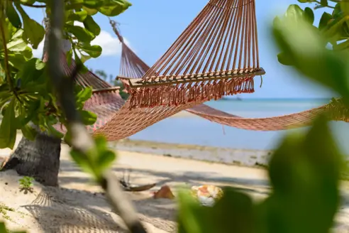 Deluxe værelserne har plads til fire voksne eller to voksne og to børn. De har to queen size senge, en dejlig gårdhave ved stranden med en tilhørende hængekøje. Der er både indendørs og udendørs badeværelse og masser af plads til op til fire personer.