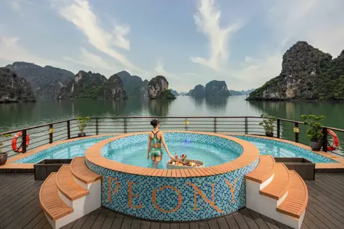 Peony Cruises venter med 20 stilfuldt indrettede kahytter, en elegant restaurant og bar, fitnessfaciliteter, jacuzzi, pool og spa-service. Mens du er om bord på båden, kan du glæde dig til ikke kun de lækre kvalitetsomgivelser og en generel komfortabel elegance men også den varme, gæstfri atmosfære og det imødekommende personale, der er dedikeret til at levere en enestående service, der virkelig sætter prikken over I'et på en mindeværdig oplevelse.