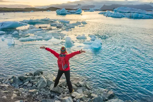 En klassisk og smuk sejltur i Diskobugten, hvor I glider mellem gigantiske isbjerge. Isfjorden er optaget på UNESCOs verdensarvsliste, og da bræen dagligt udstøder millioner af tons is, er sceneriet i konstant forandring. Turen inkluderer guide og en forfriskende cocktail.