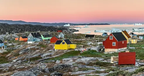 Rejsen fortsætter mod nord til Ilulissat, der er placeret direkte ved den UNESCO-beskyttede isfjord. Her kommer I helt tæt på de gigantiske isbjerge, uanset om det er fra vandsiden, på vandrestierne langs kanten eller fra luften på en helikoptertur mod indlandsisen. Undervejs får I også et unikt indblik i kulturarven, når I møder de ikoniske slædehunde, der stadig er en central del af livet i Grønland.