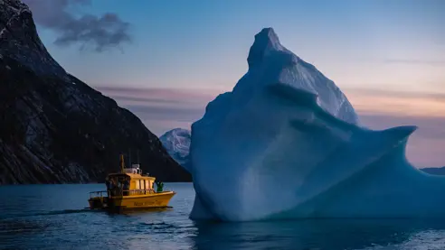 Nuuks fjordsystem er rigt på liv, og her er pukkelhvalen fredet, hvilket gør området til et af de bedste steder i Grønland at opleve de store havdyr. I selskab med en erfaren skipper sejler I ud for at finde hvalerne, hvor de ofte leger og søger føde i det dybe vand.