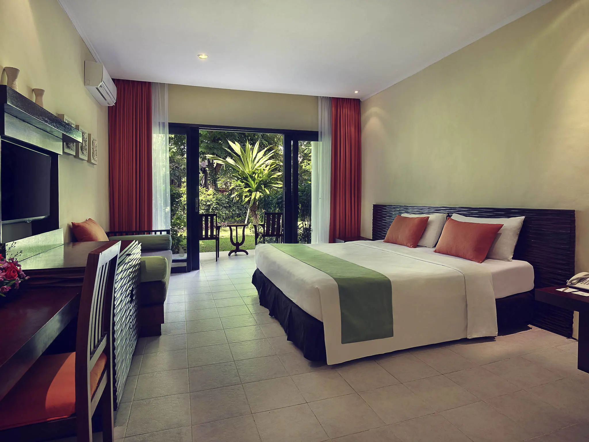 Du bliver indkvarteret på et rummeligt og bekvemt værelse, der er indrettet i charmerende balinesisk stil, hvor du kan lade dig fortrylle af den skønne udsigt til haven eller poolen. Smæk benene op og nyd den tropiske sol på en liggestol ved hotellets store swimmingpool. Suppler eventuelt afslapningen med en forfriskende og afkølende drink fra poolbaren.