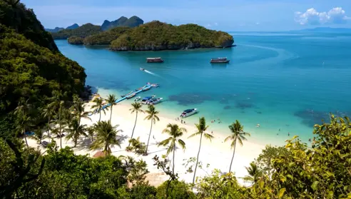 Efter fire nætter i den rolige tropeatmosfære går turen videre til Koh Samui, Thailands næststørste ø, som især er kendt for sine betagende strande og naturlige skønhed. Her tiltrækkes turister og lokale af løftet om en afslappende strandferie komplet med solbadning, god mad, flot natur og et stort udvalg af vandaktiviteter – noget. Der er rig mulighed for at udforske paradislivet i det krystalklare vand, på de lækre hvide sandstrande og øens frodige midte, der gemmer på vandfald, naturskønne trekkingruter og skjulte Buddha-statuer midt i den grønne jungle.