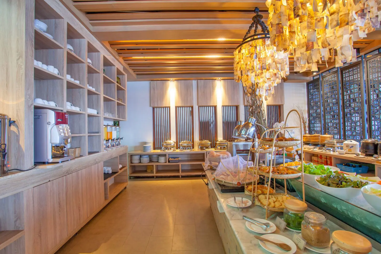 Du kan spise dine måltider på hotellets restaurant, som tilbyder både internationale såvel som thai retter. Her spiser du med udsigt over havet, og du kan lytte til bølgerne, mens du nyder maden.