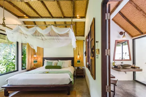 Alle bungalows er individuelt indrettede i hyggelig thaistil. De er store og med stor privat terrasse. De indeholder alle køleskab, tv, kaffe/the faciliteter, delvist udendørs badeværelse samt aircondition. Der er god plads mellem bungalowerne, så der er masser af privatliv på den tropiske ø.